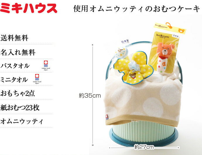 Sサイズ(4-8kg) Mサイズ(6-11kg) Lサイズ(9-14kg) おむつケーキのサイズ 直径約26cm×高さ約35cm このおむつケーキの装備アイテム ■mikihouse アイテム2点 ■今治バスタオル(刺繍可能) ■mikihouse ミニタオル(刺繍可能) ■オムニウッティ ■メッセージカード ■アートフラワー ギフト対応 ※アートフラワーの色は時期によって変化する場合がございます。